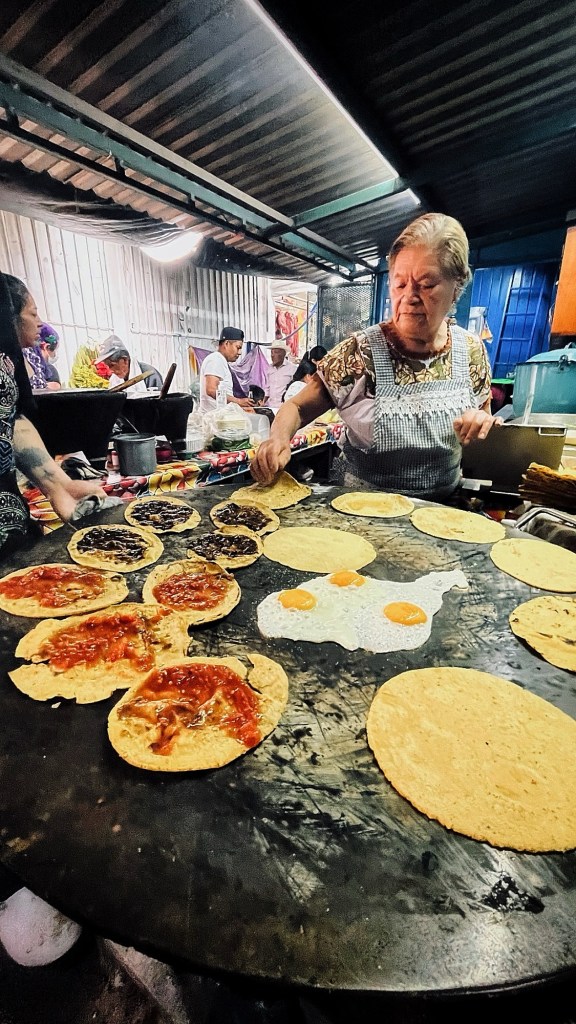 The soul of Oaxaca runs through its markets. There are several around town, and while exploring them is exhilarating, it can also get overwhelming quickly. Omar is here to help. As he says hello to every person you pass, he also takes you to find the best deep friend tacos, provides pallet cleansers of ripe mango with chile, and introduces you to the infamous Dona Vale and her memelas (savory corn cakes cooked on the comal).